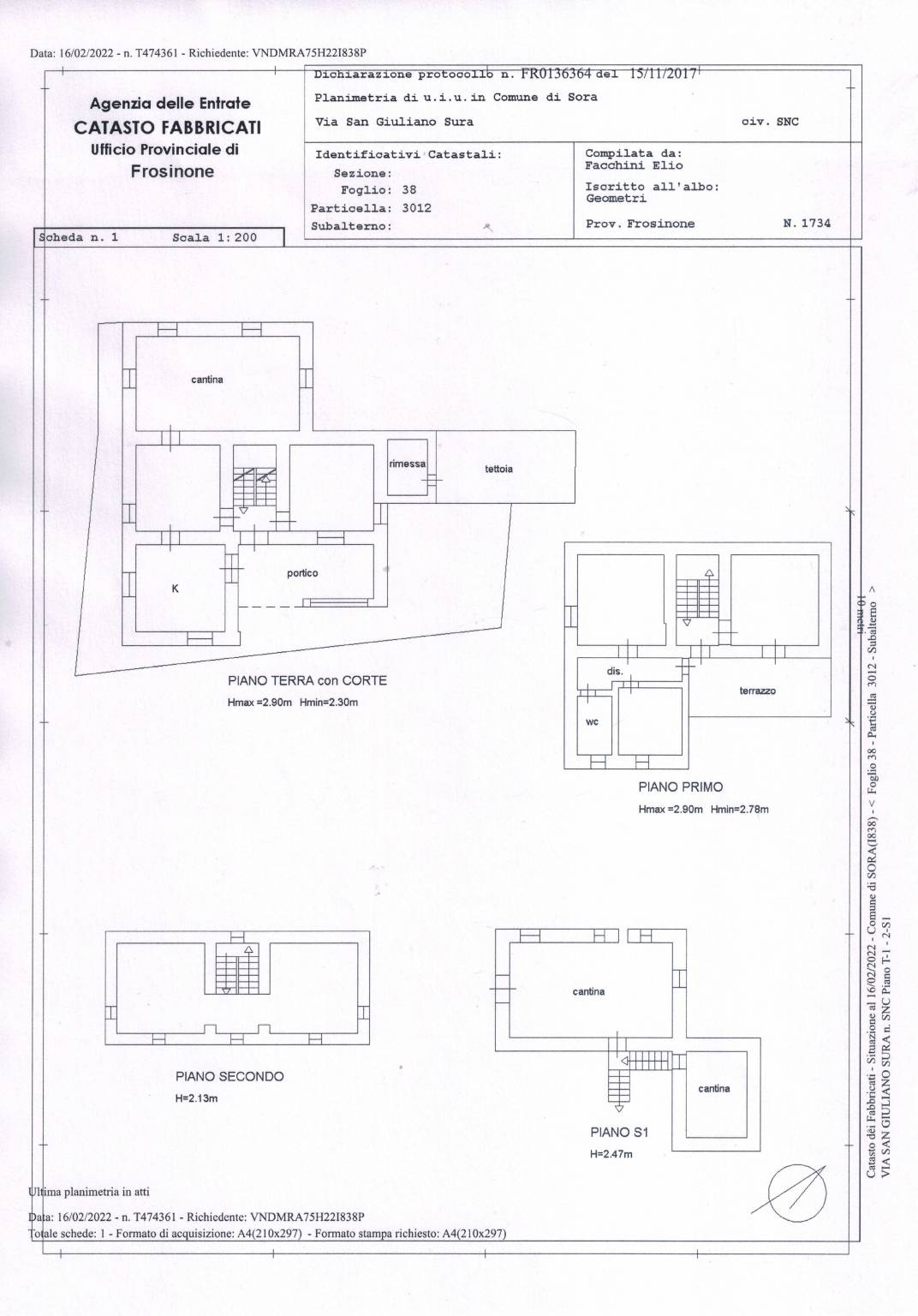 Interessante casale indipendente di mq commerciali 330 in vendita a Sora (Fr) via S. Giuliano Sura, la zona in cui è situato questo casale è residenziale ed in espansione. Questa soluzione abitativa anticamente con il significato di campagna, oggi rustico/casale, resta una delle tipologie abitative più belle e desiderate, la sua struttura edilizia legata alla vita di campagna, i suoi esterni, i soffitti a volta, i camini, le cantine in pietra, il pozzo, il portico esterno, il terrazzo con affaccio sulle campagne. Disposto su 4 livelli, presenta un ampio portico di 20mq. L'ingresso indipendente con affaccio affascina così tanto da sognare come renderla la casa dei sogni. La sensazione che si ha quando si entra in questo immobile è che tutto sia al posto giusto, dove ogni cosa ha un senso e che possa divenire la casa in cui vivere. Un ben restauro che aiuti a conservare l'unicità di queste architetture, e che conservi lo spirito rurale della casa. Mescolando elementi moderni alla sua storicità. La porta d'ingresso ci accoglie in un ambiente dove gli splendidi soffitti a volta, icona d'eleganza, rappresentano un plus per la casa avvolgendo con il suo fascino tutti gli ambienti. Dal PIANO TERRA che si sviluppa su un salone di 20mq con camino a parete ed accesso al portico, sul soggiorno di 16 mq con accesso al vano cantina in grotta / taverna, meraviglioso in pietra di 30mq. La cucina di 16 mq anch'essa con camino a parete ed ed accesso al portico. Poter unire la bellezza di un soffitto a volta con arredamento attuale per poter creare spazi attuali e con stile. Poter unire la bellezza di un soffitto a volta con arredamento attuale per poter creare spazi attuali e con stile. Soffitti del genere possono tornare a splendere grazie a opere di ristrutturazione che sappiano mantenere intatti i tratti distintivi. I 2 camini, anch'essi elementi che costudiscono l'essenza della casa. Dal piano terra arriviamo al PRIMO PIANO da scala interna in pietra, piano destinato alla zona notte con 2 camere da letto matrimoniali, entrambe con accesso sul terrazzo panoramico, proseguendo troviamo un disimpegno, un bagno ed infine una terza camera, tutte rese luminose dall'eccellente esposizione solare. Infine il PIANO SECONDO sottotetto con 2 ambienti per un totale di 50 mq. Il terreno di pertinenza 600 mq che si sviluppa quasi totalmente nella parte retrostante. Presenza di una tettoia coperta per posto auto ed una rimessa. L'immobile risulta posizionato in modo dominante ed esposta ad eccellente luce solare. Inoltre c'è la possibilità di acquisto ulteriore terreno confinante di 2.650 mq per chi volesse, non ristrutturare, ma demolire e ricostruire o ampliare l'area verde retrostante (rendering in book foto). La nostra proposta di vendita risulta essere una interessante soluzione qualità/prezzo.