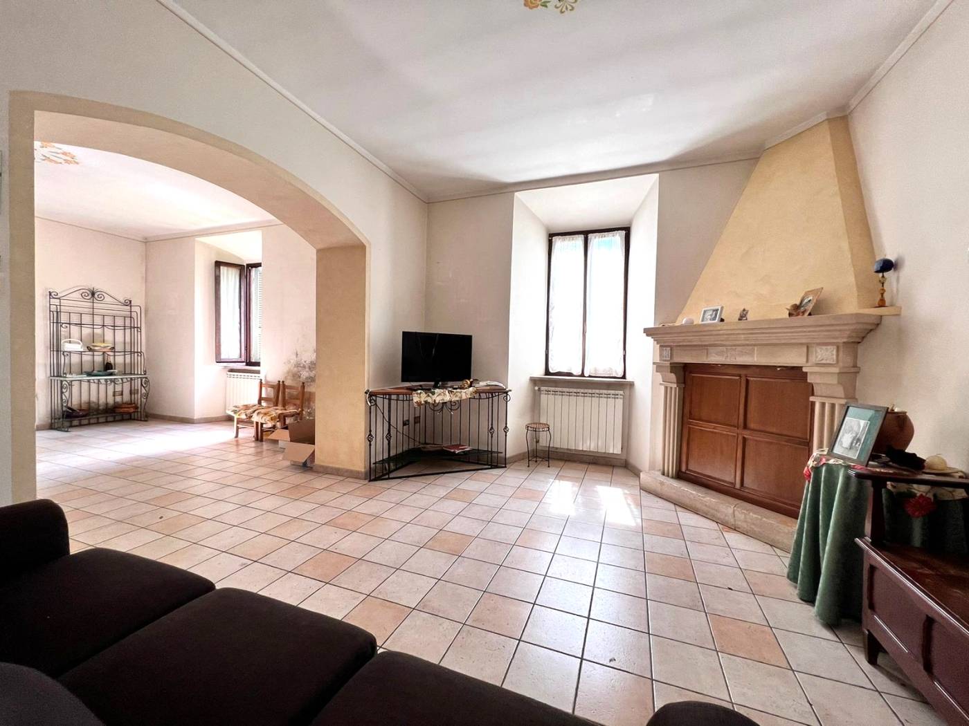 ZONA GIORNO: Ingresso coridoio e scala accesso al piano superiore, cucina in muratura con accesso a giardino, tinello con camino in marmo, sala da pranzo, salotto, bagno.