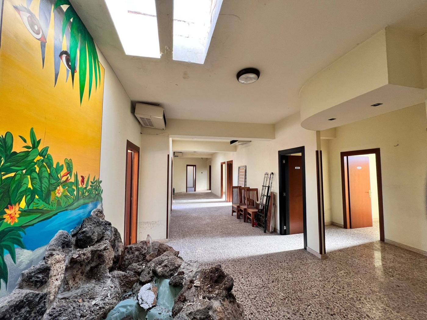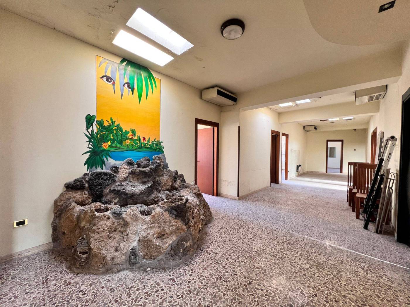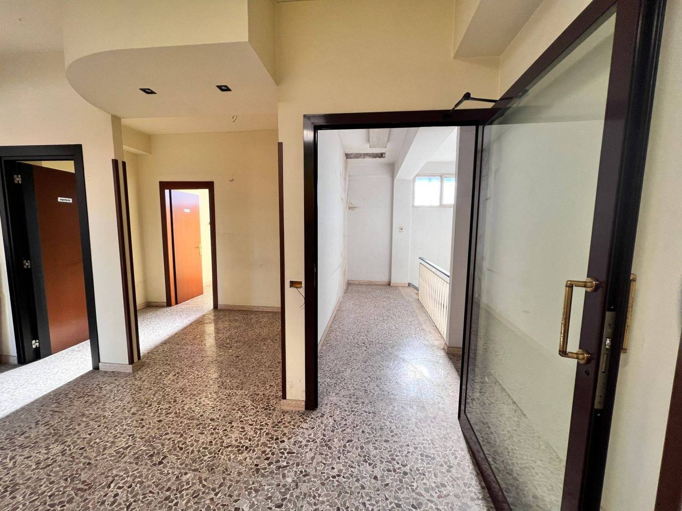 L'edificio è con struttura in cemento armato, il PIANO PRIMO si sviluppa quasi totalmente in soluzione open space con grande salone si 230 mq, 3 uffici, disimpegno e bagni. Il PIANO SECONDO è distribuito con ben otto ambienti uso ufficio, una zona direzione, una zona segretaria, ripostigli/archivio, disimpegno, ingresso e zona bagni.