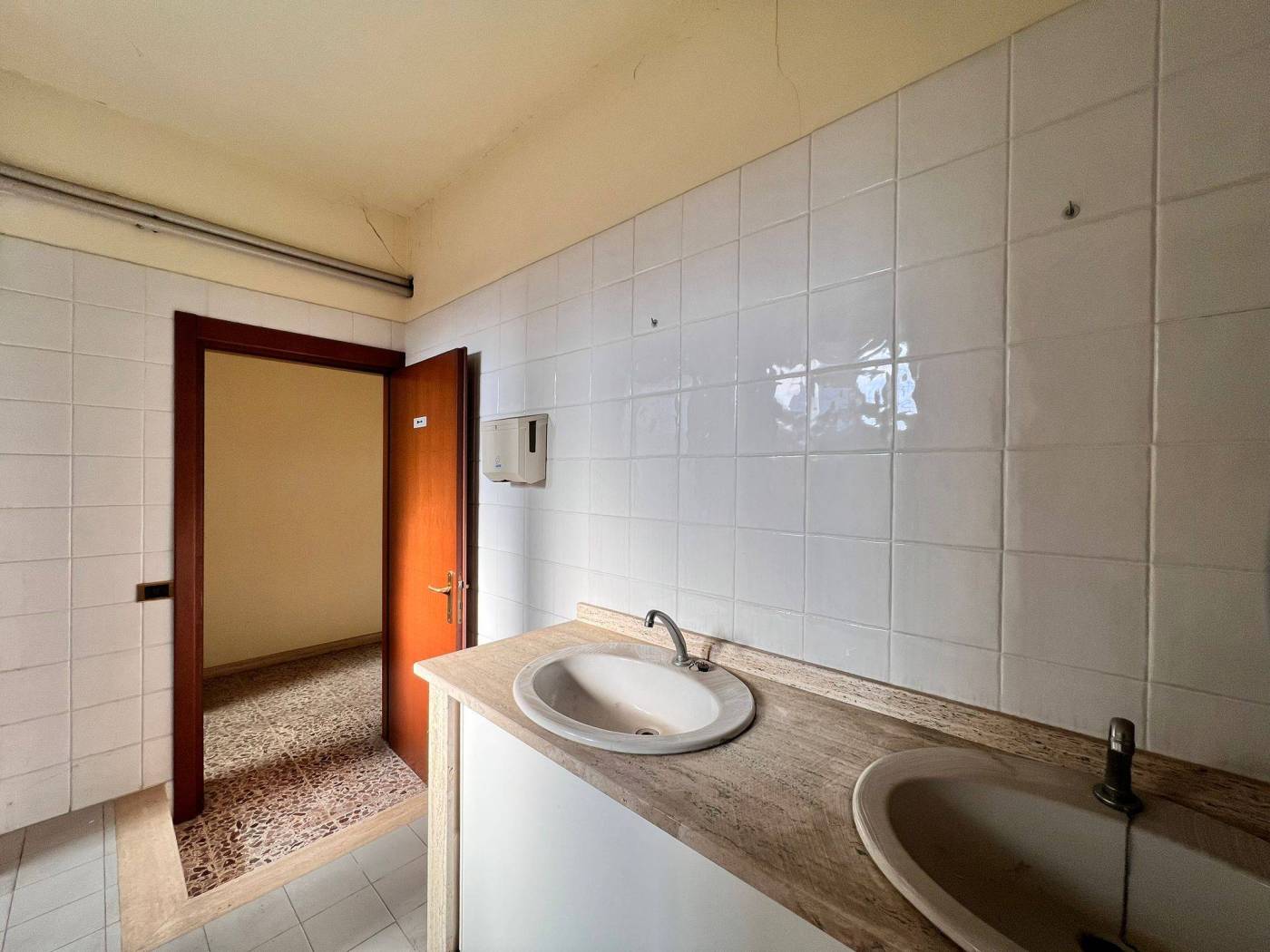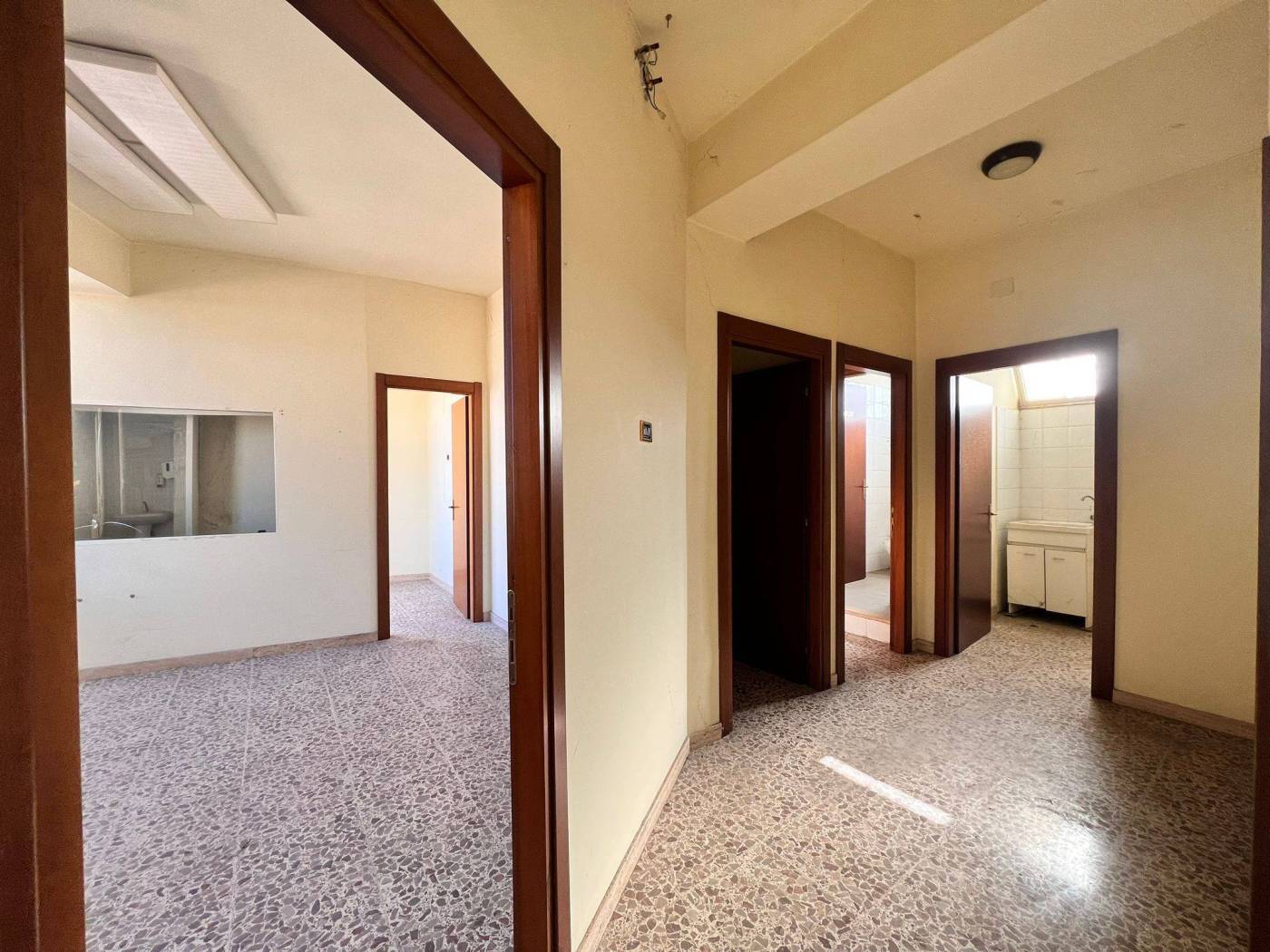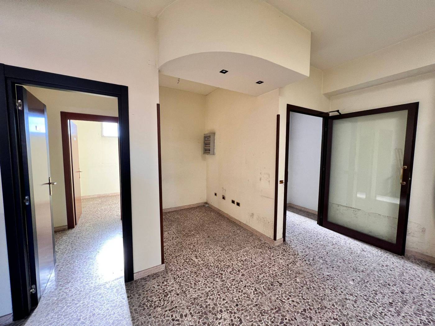 L'edificio è con struttura in cemento armato, il PIANO PRIMO si sviluppa quasi totalmente in soluzione open space con grande salone si 230 mq, 3 uffici, disimpegno e bagni. Il PIANO SECONDO è distribuito con ben otto ambienti uso ufficio, una zona direzione, una zona segretaria, ripostigli/archivio, disimpegno, ingresso e zona bagni.