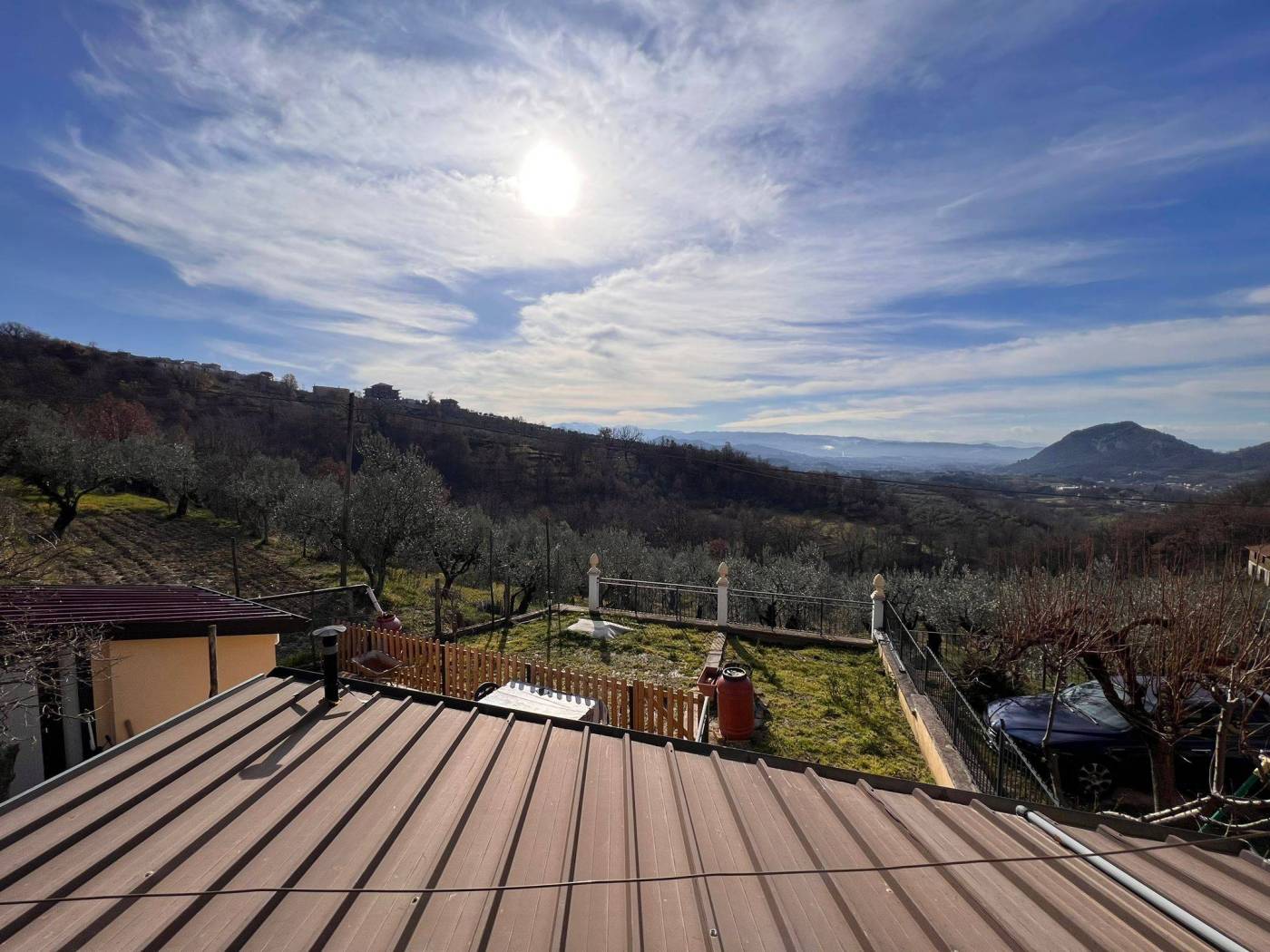 L'abitazione, disposta su due livelli, offre una spaziosa area esterna composta da una corte pavimentata e un piccolo giardino, ideali per godere del clima e della tranquillità del luogo. Un'ampia aia permette il parcheggio di auto e un cancello pedonale conduce alla veranda/tinello di 20 mq, il vero punto di forza della casa, che regala una vista mozzafiato su Sora. Qui, una zona salottino è stata allestita per rilassarsi e godere appieno dello spazio esterno, che si apre sulla corte privata e sul giardino, arricchita da un comodo bagno di servizio e una legnaia.