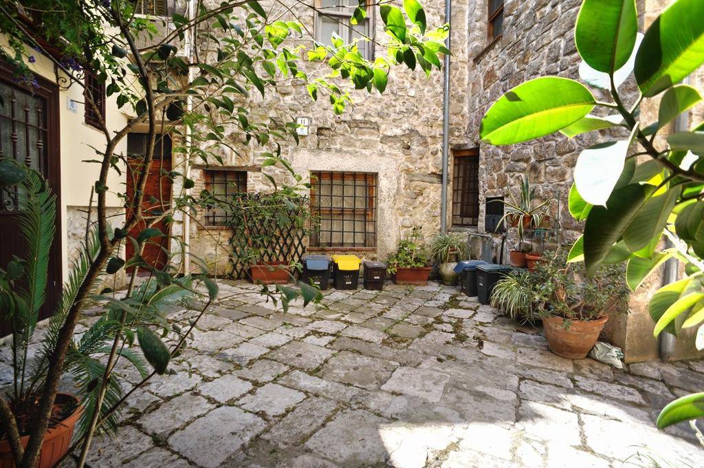 Appena fuori dal corso principale di Fondi, lungo le antiche strade acciottolate, un cancello si apre su una piazza semi-privata. Accolti da due porte d'ingresso, di cui una che conduce su per le scale di marmo al salone principale e alla cucina, l'altra nella camera da letto principale.