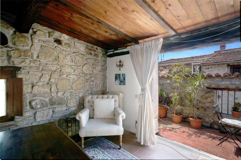 La grande camera da letto, a cui si accede anche dalle scale anteriori, ha un bagno privato, e si trova in quella che in origine sarebbe stata la stalla e la mangiatoia per gli animali e il deposito per gli attrezzi, che è stata sensibilmente restaurata con pareti in pietra, travi in legno e pavimenti in cotto. Salendo le scale nella zona giorno principale si viene accolti da un elegante soggiorno aperto con camino a legna, porte francesi si aprono su un balcone che si affaccia sulla piccola piazza sottostante. Nel retro c'è una zona pranzo e un'elegante cucina ad angolo nuovo.
