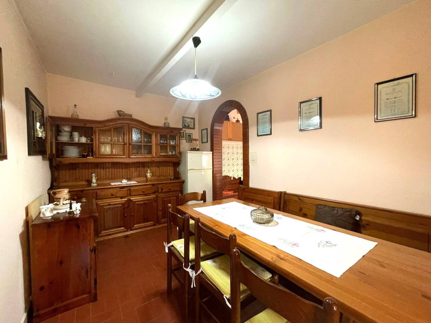 La disposizione di questo piccolo cielo/terra prevede una distribuzione dei vani abitativi su due livelli comunicanti con scala esterna; entrando dal piccolo cancelletto e salendo la scala esterna che conduce al primo livello terra incontriamo subito una porta che accede in una cucina con camino ed un tinello/sala da pranzo. Dalla scala esterna salendo al secondo livello un piccolo disimpegno balconato apre la porta del livello secondo dove un disimpegno d'ingresso accoglie una camera da letto matrimoniale ed un bagno con vasca. Nel piano seminterrato è situata la cantina utile come rimessa per la legna del camino e comodo ripostiglio.