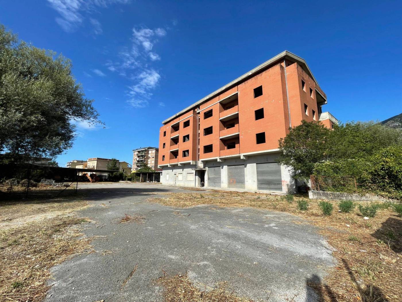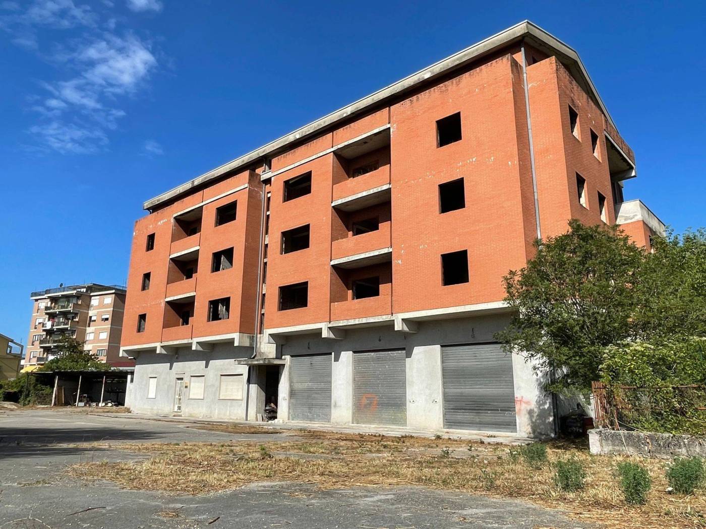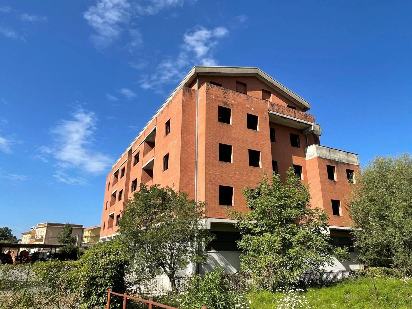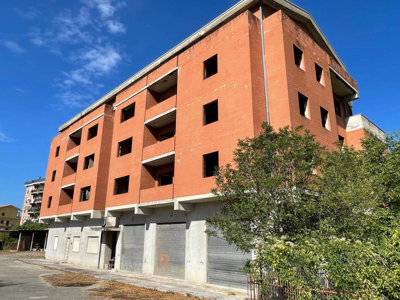 - L'edificio, censito in catasto urbano al fg. 23 mapp. 378, ha una struttura in cemento armato ed è costituito da cinque piani fuori terra per una superficie totale coperta di circa 3.000 mq. Il Piano Terra, a destinazione commerciale, ha una superficie di circa 600,00 mq, mentre i restanti piani, a destinazione residenziale, sono costituiti complessivamente da 20 unità abitative di diverse consistenze. Il tetto è del tipo a capanna con il manto di copertura in tegole di laterizio. Le tamponature perimetrali esterne sono rifinite ad intonaco per il piano terra, ed a mattoni in cotto a faccia vista per i piani superiori. L'immobile, ad esclusione del piano terra, è privo di finiture, di impianti ed infissi.