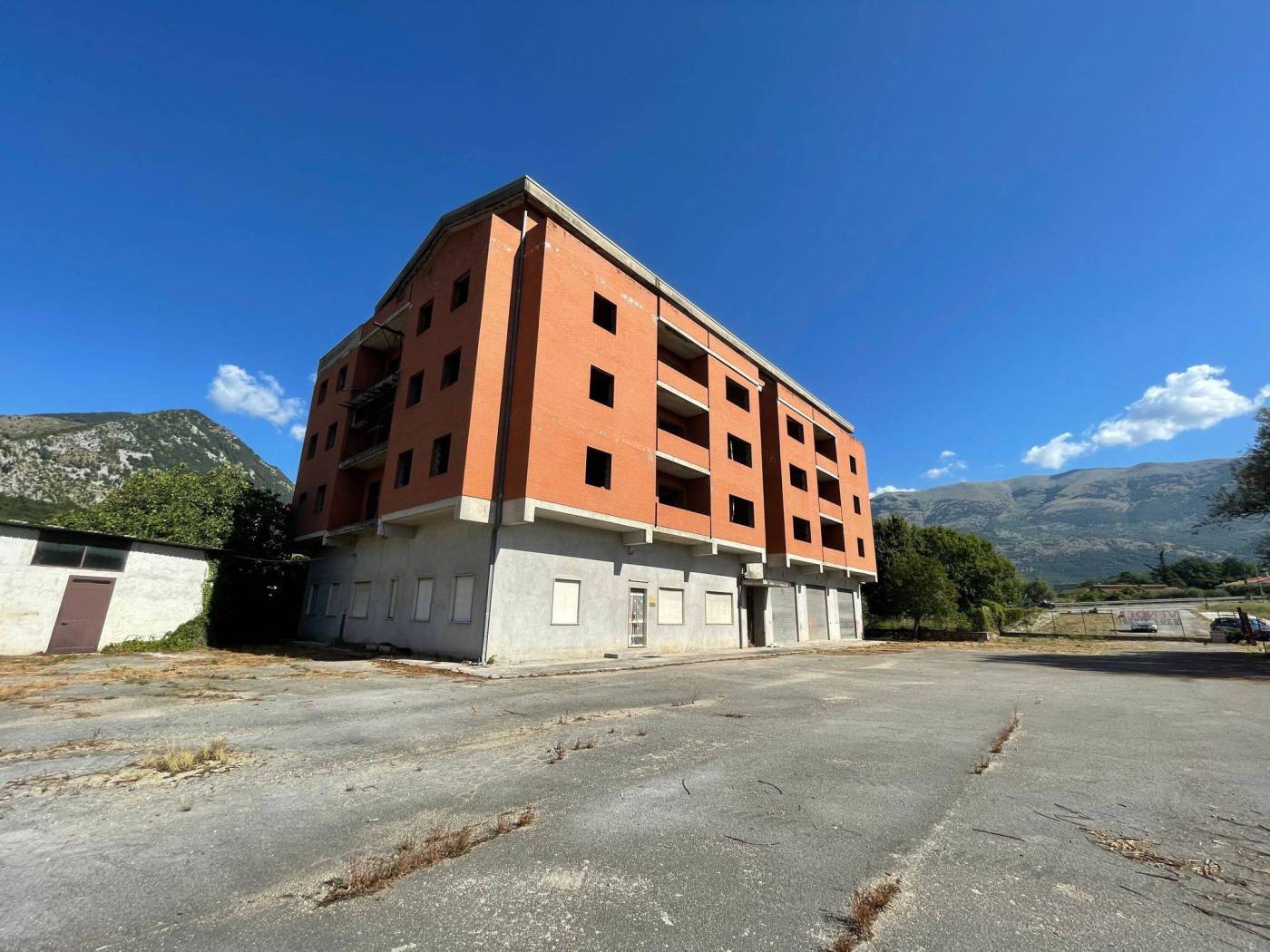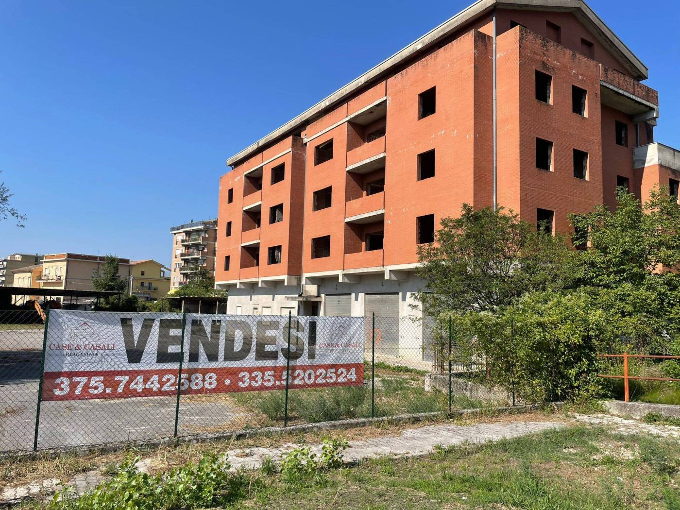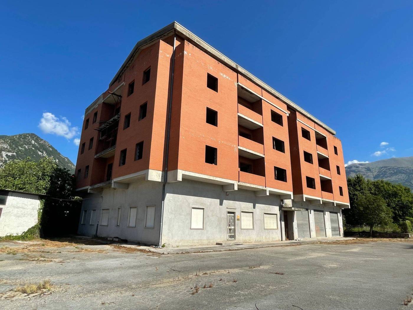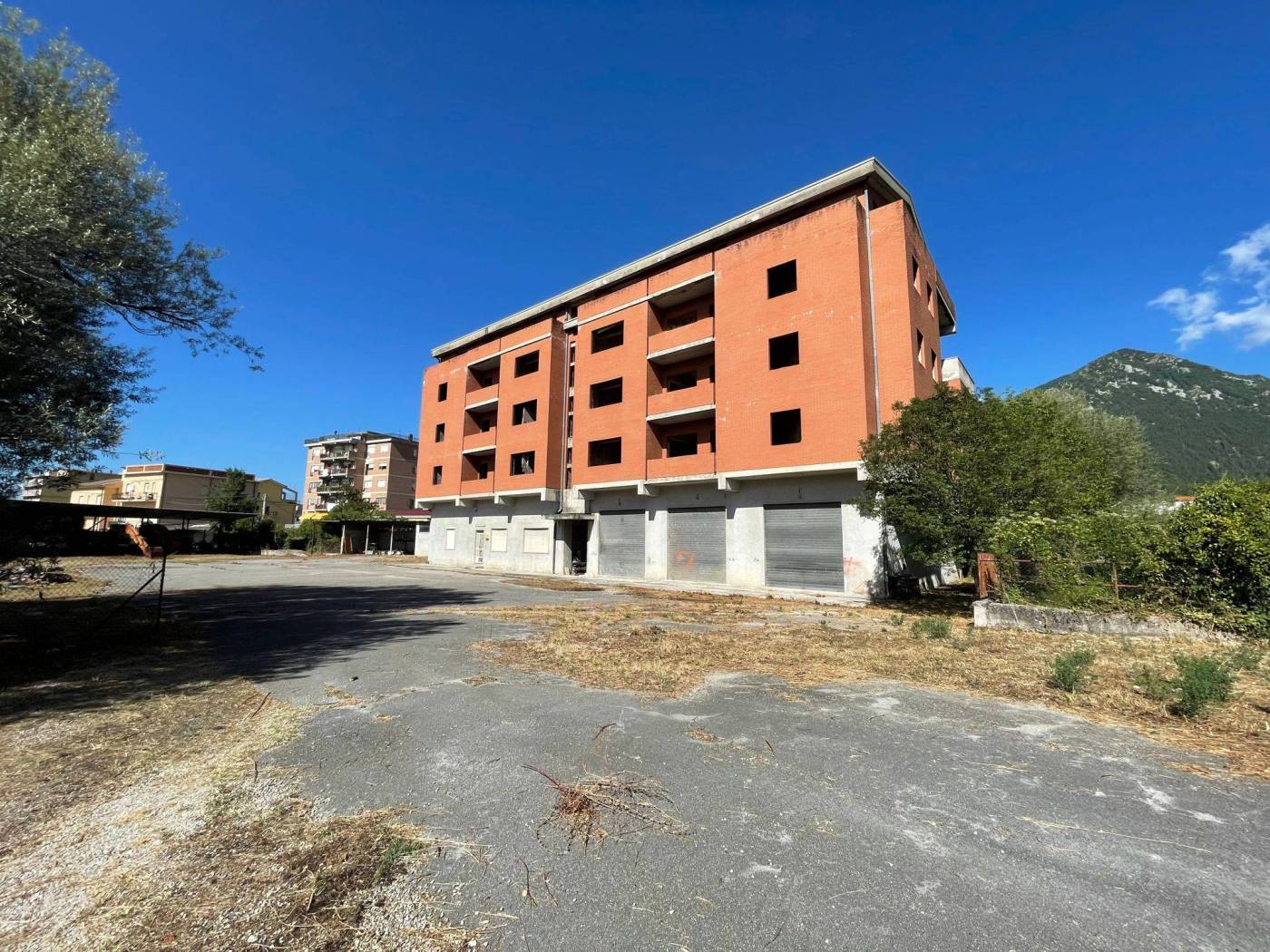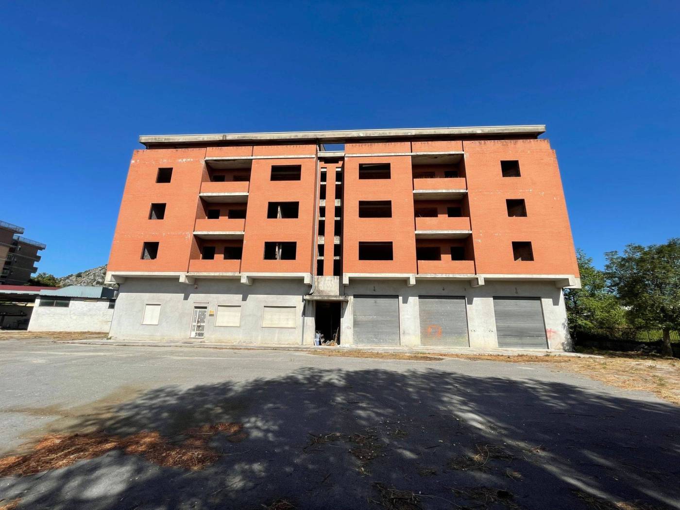 - L'edificio, censito in catasto urbano al fg. 23 mapp. 378, ha una struttura in cemento armato ed è costituito da cinque piani fuori terra per una superficie totale coperta di circa 3.000 mq. Il Piano Terra, a destinazione commerciale, ha una superficie di circa 600,00 mq, mentre i restanti piani, a destinazione residenziale, sono costituiti complessivamente da 20 unità abitative di diverse consistenze. Il tetto è del tipo a capanna con il manto di copertura in tegole di laterizio. Le tamponature perimetrali esterne sono rifinite ad intonaco per il piano terra, ed a mattoni in cotto a faccia vista per i piani superiori. L'immobile, ad esclusione del piano terra, è privo di finiture, di impianti ed infissi.