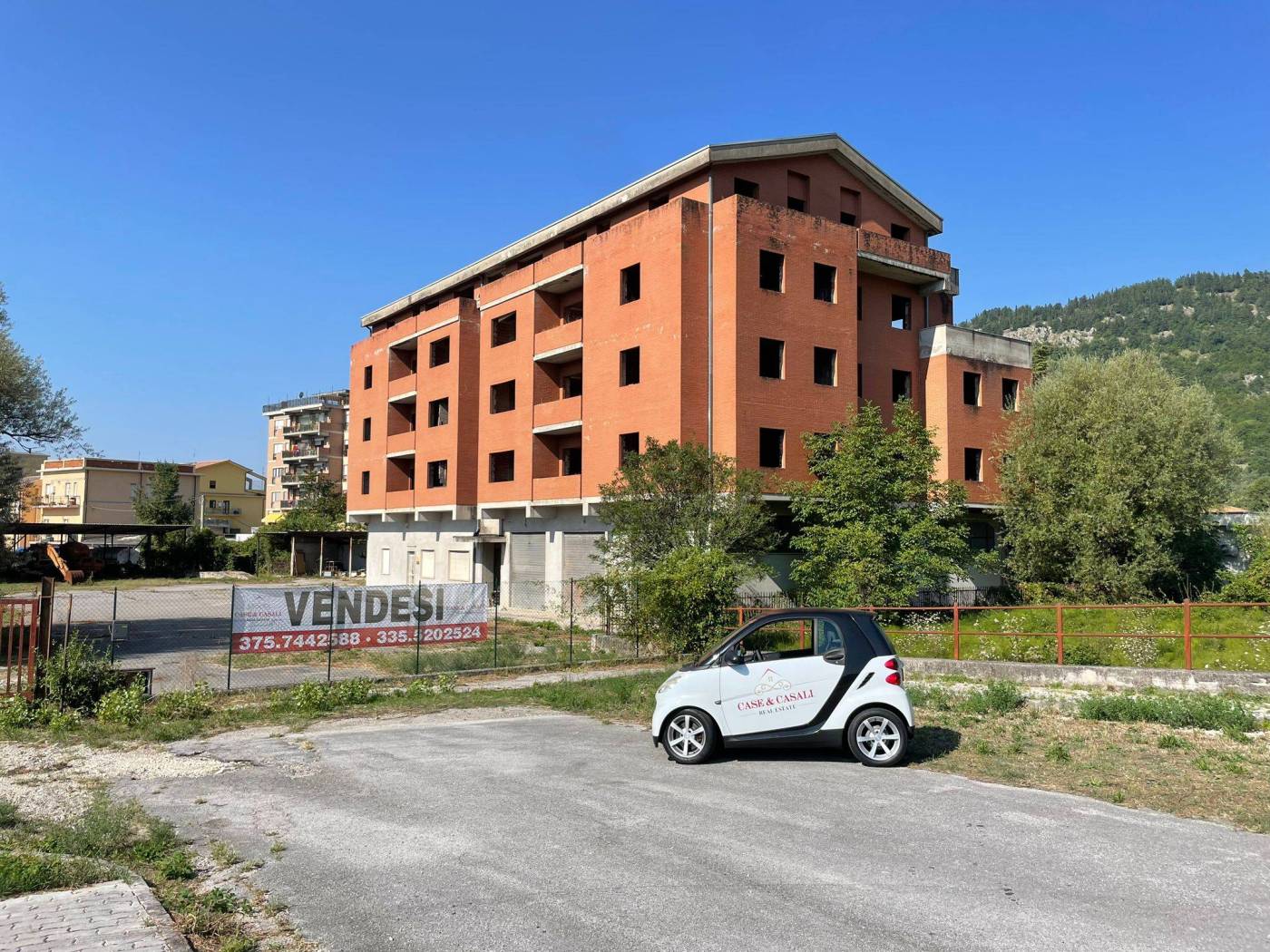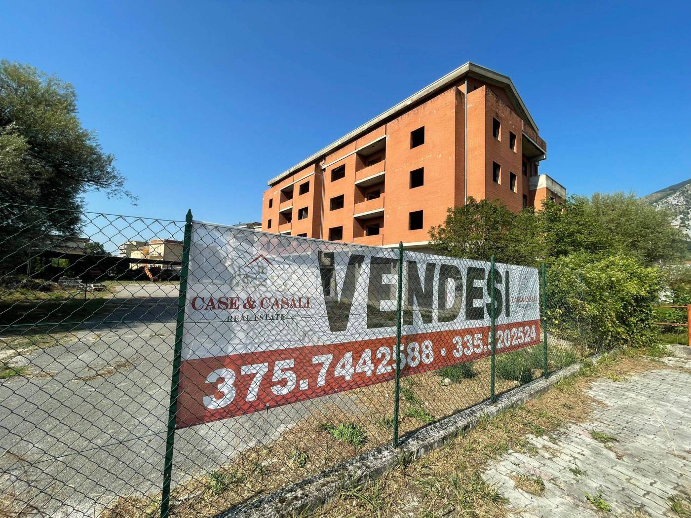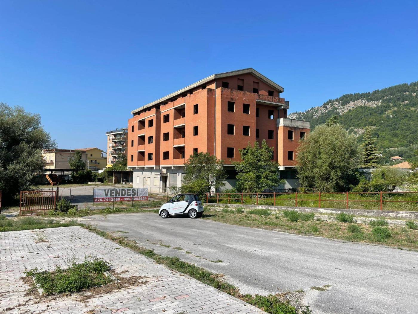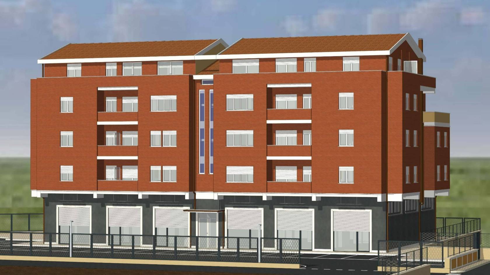 - L'edificio, censito in catasto urbano al fg. 23 mapp. 378, ha una struttura in cemento armato ed è costituito da cinque piani fuori terra per una superficie totale coperta di circa 3.000 mq. Il Piano Terra, a destinazione commerciale, ha una superficie di circa 600,00 mq, mentre i restanti piani, a destinazione residenziale, sono costituiti complessivamente da 20 unità abitative di diverse consistenze. Il tetto è del tipo a capanna con il manto di copertura in tegole di laterizio. Le tamponature perimetrali esterne sono rifinite ad intonaco per il piano terra, ed a mattoni in cotto a faccia vista per i piani superiori. L'immobile, ad esclusione del piano terra, è privo di finiture, di impianti ed infissi.