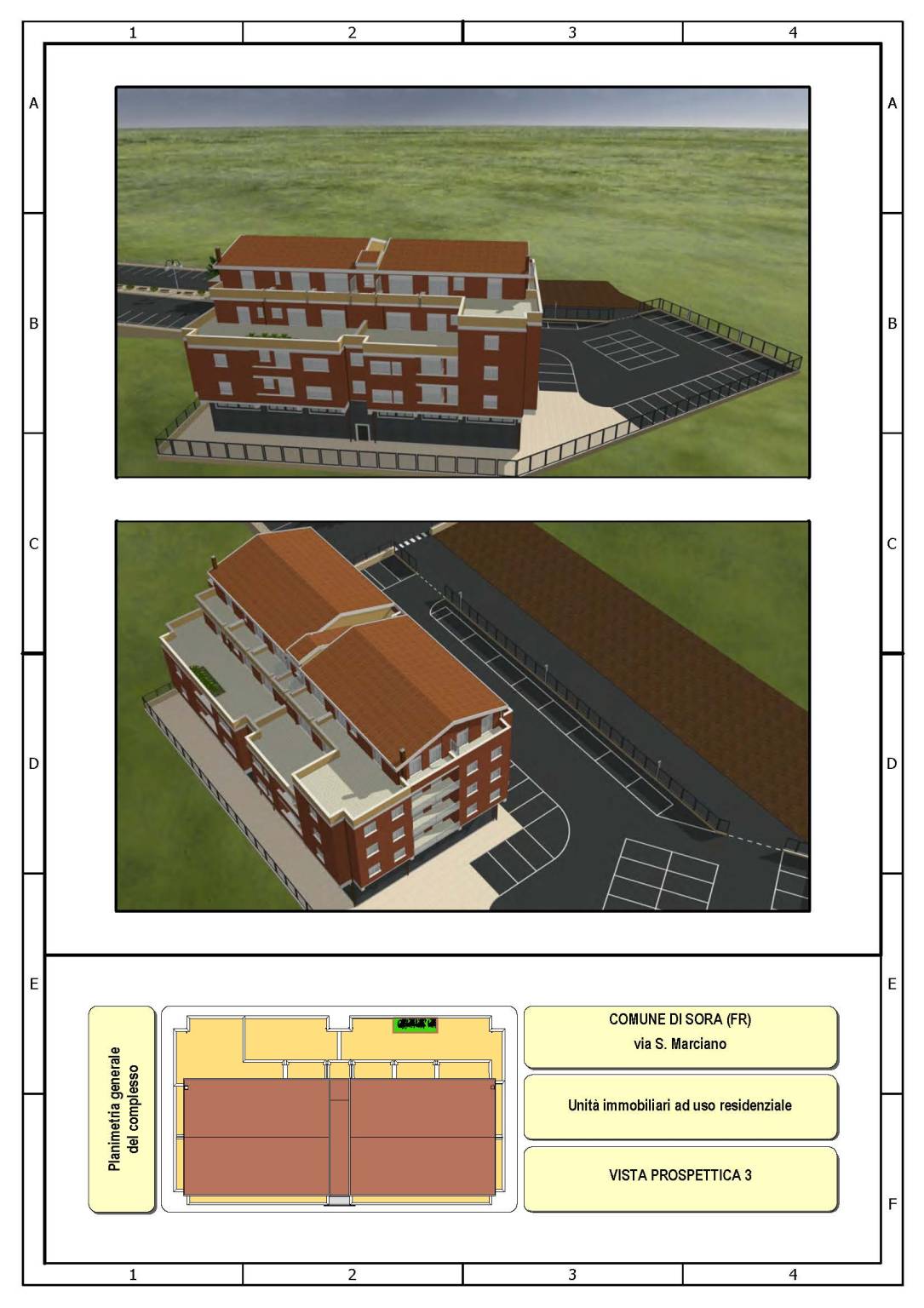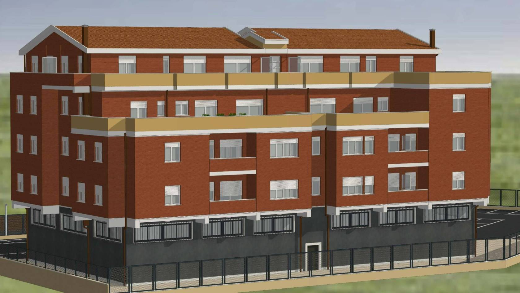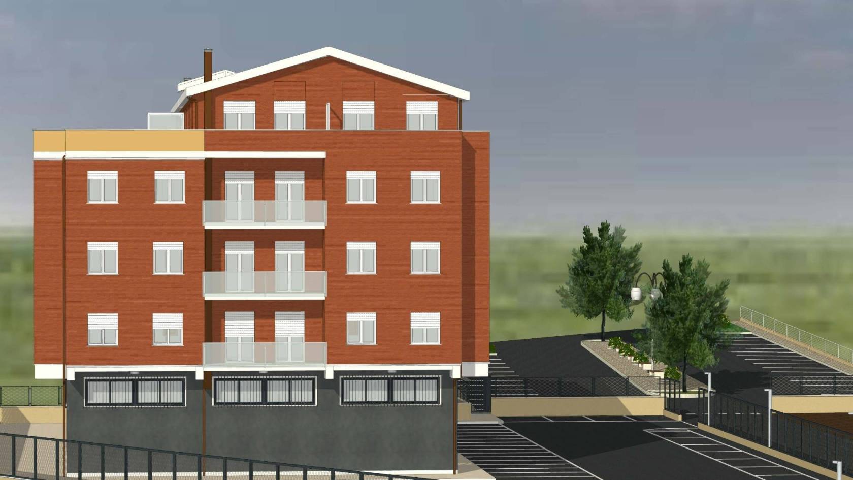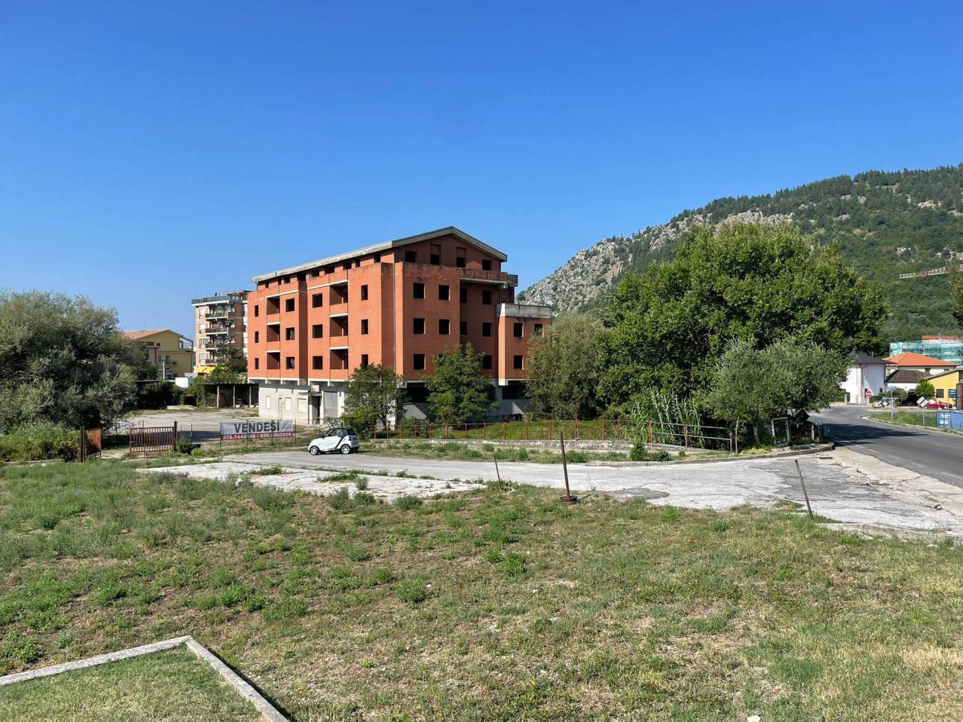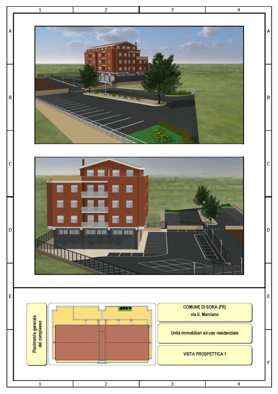 - L'edificio, censito in catasto urbano al fg. 23 mapp. 378, ha una struttura in cemento armato ed è costituito da cinque piani fuori terra per una superficie totale coperta di circa 3.000 mq. Il Piano Terra, a destinazione commerciale, ha una superficie di circa 600,00 mq, mentre i restanti piani, a destinazione residenziale, sono costituiti complessivamente da 20 unità abitative di diverse consistenze. Il tetto è del tipo a capanna con il manto di copertura in tegole di laterizio. Le tamponature perimetrali esterne sono rifinite ad intonaco per il piano terra, ed a mattoni in cotto a faccia vista per i piani superiori. L'immobile, ad esclusione del piano terra, è privo di finiture, di impianti ed infissi.