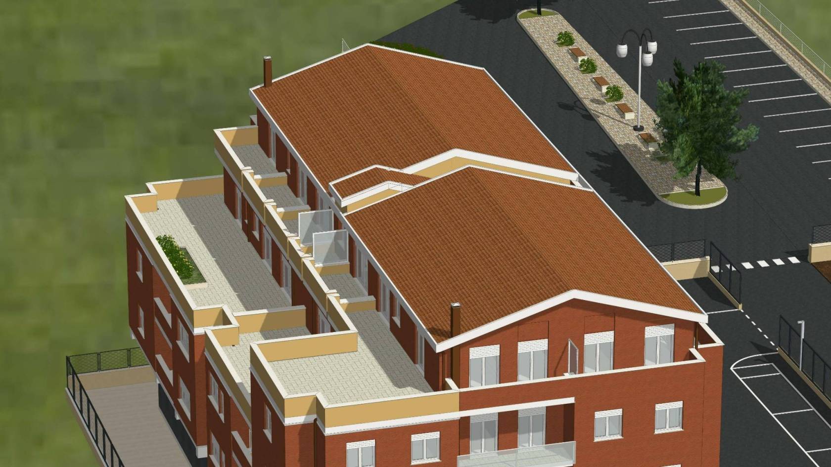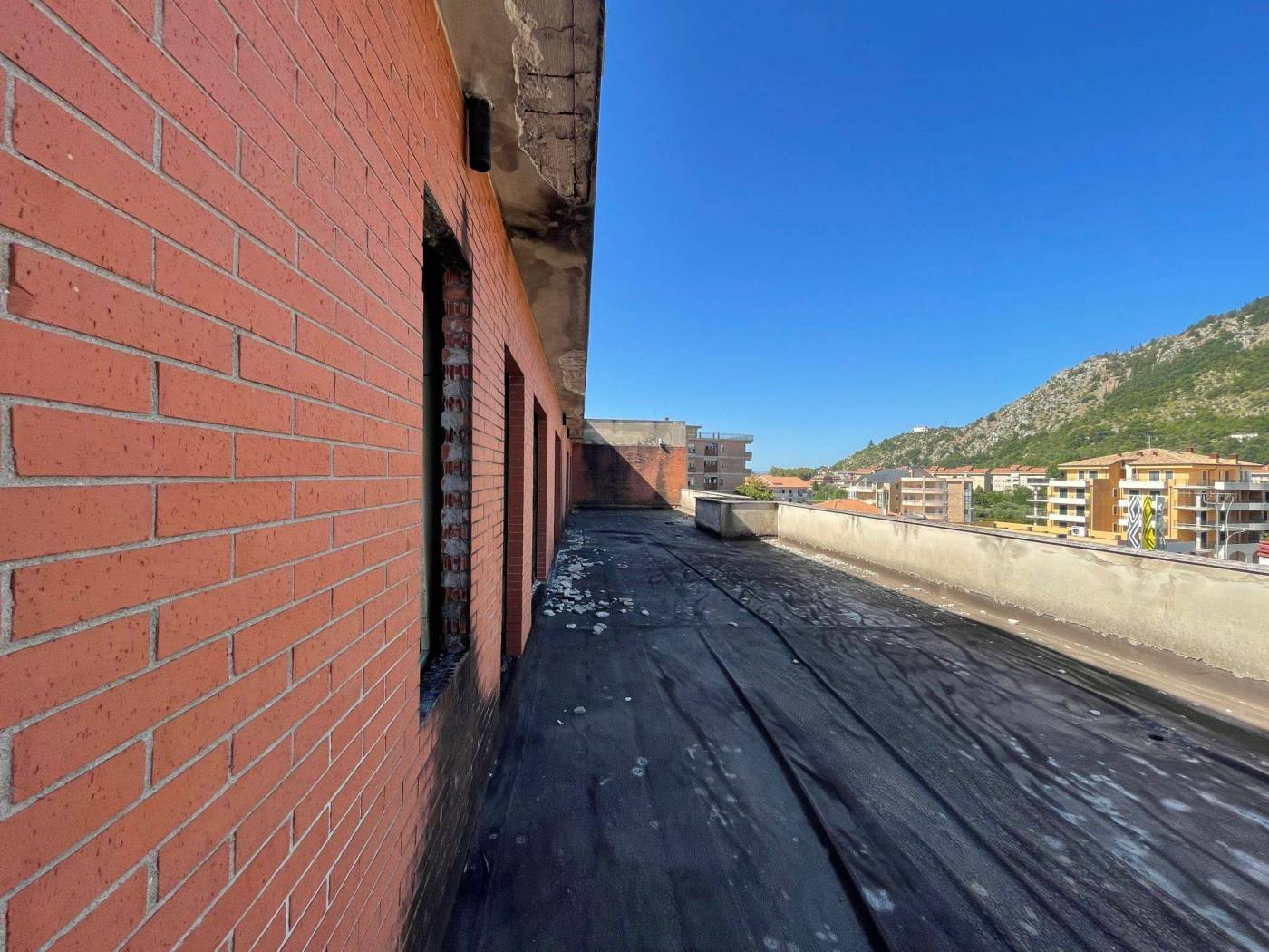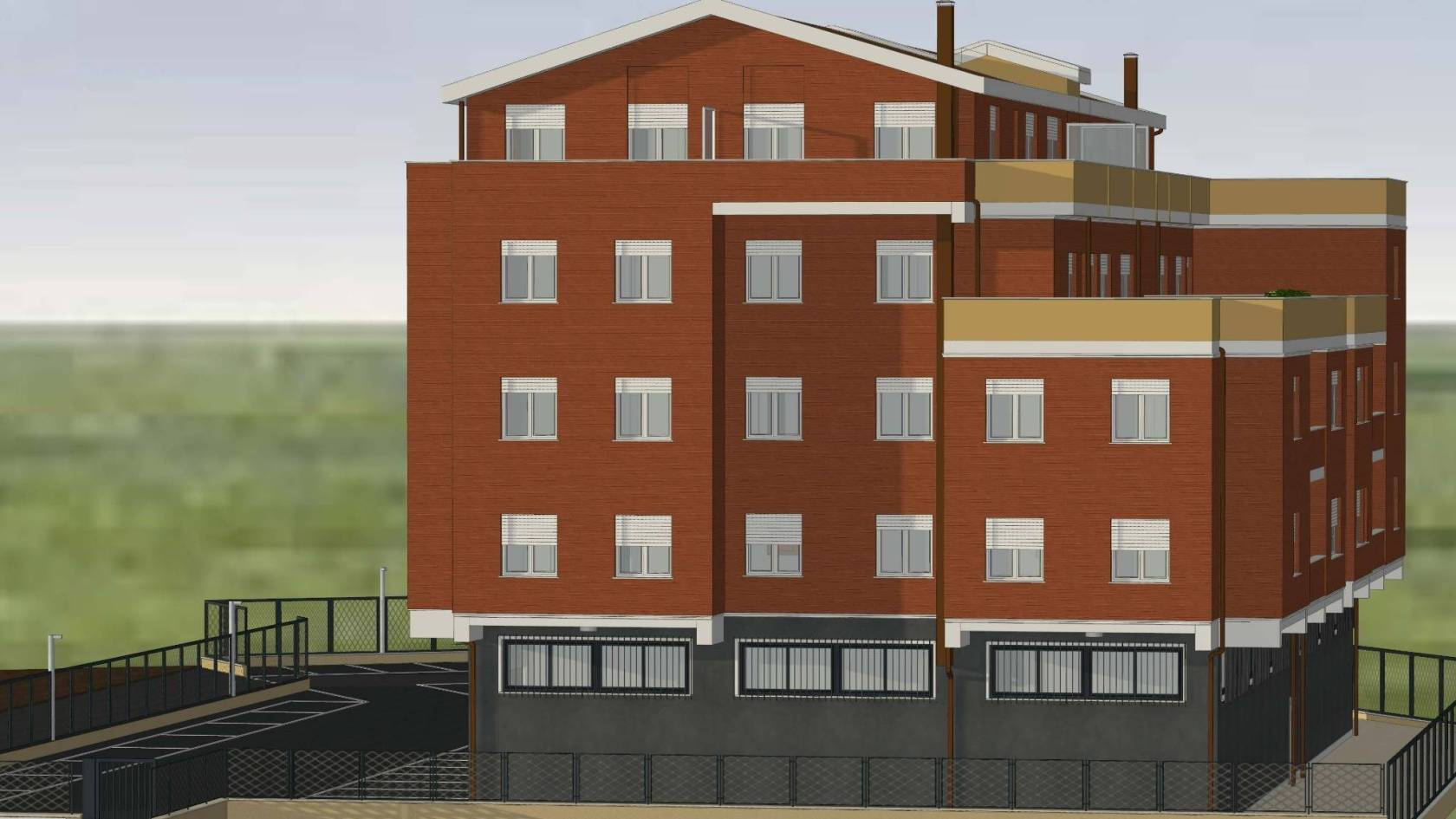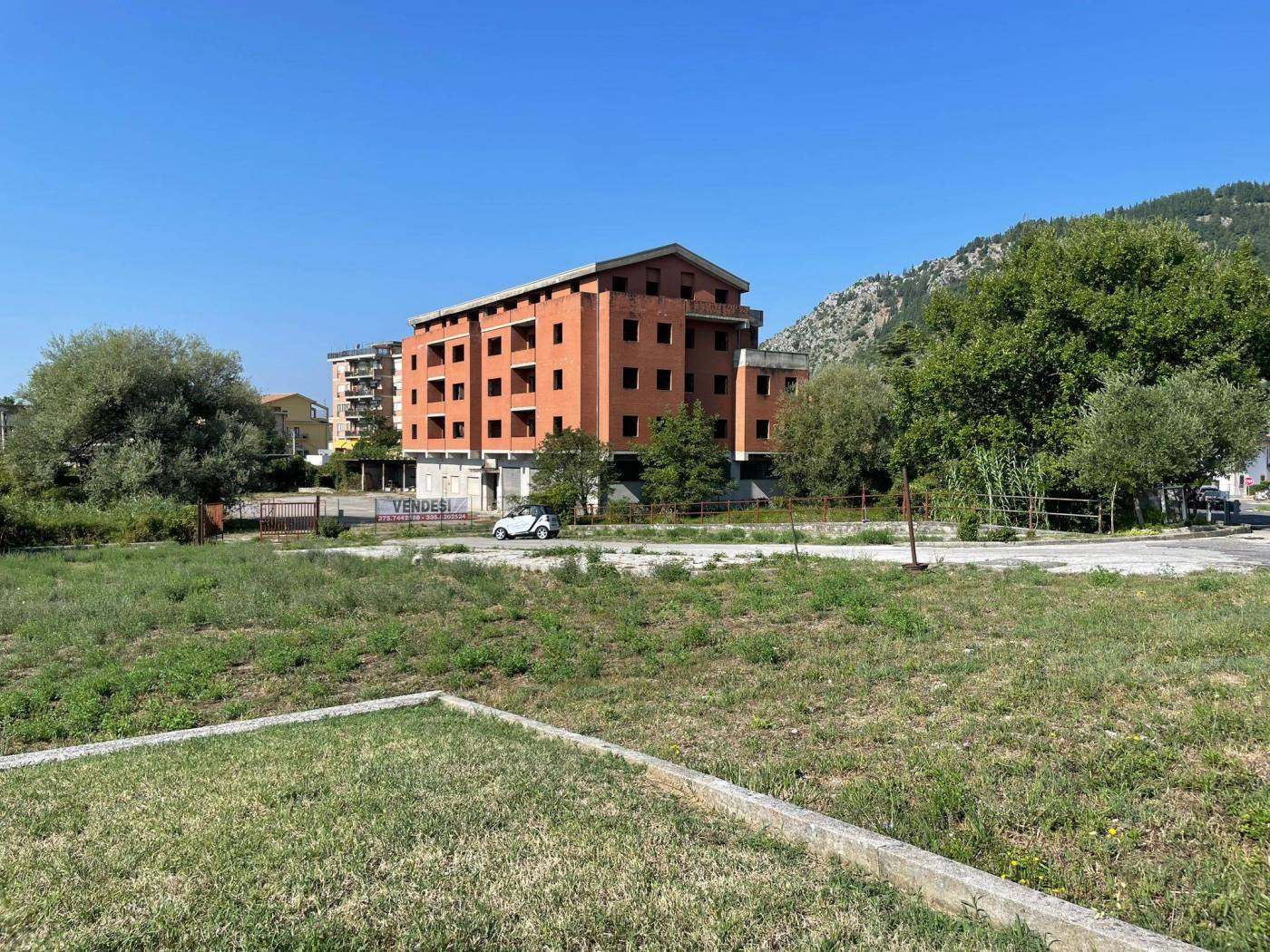 - L'edificio, censito in catasto urbano al fg. 23 mapp. 378, ha una struttura in cemento armato ed è costituito da cinque piani fuori terra per una superficie totale coperta di circa 3.000 mq. Il Piano Terra, a destinazione commerciale, ha una superficie di circa 600,00 mq, mentre i restanti piani, a destinazione residenziale, sono costituiti complessivamente da 20 unità abitative di diverse consistenze. Il tetto è del tipo a capanna con il manto di copertura in tegole di laterizio. Le tamponature perimetrali esterne sono rifinite ad intonaco per il piano terra, ed a mattoni in cotto a faccia vista per i piani superiori. L'immobile, ad esclusione del piano terra, è privo di finiture, di impianti ed infissi.