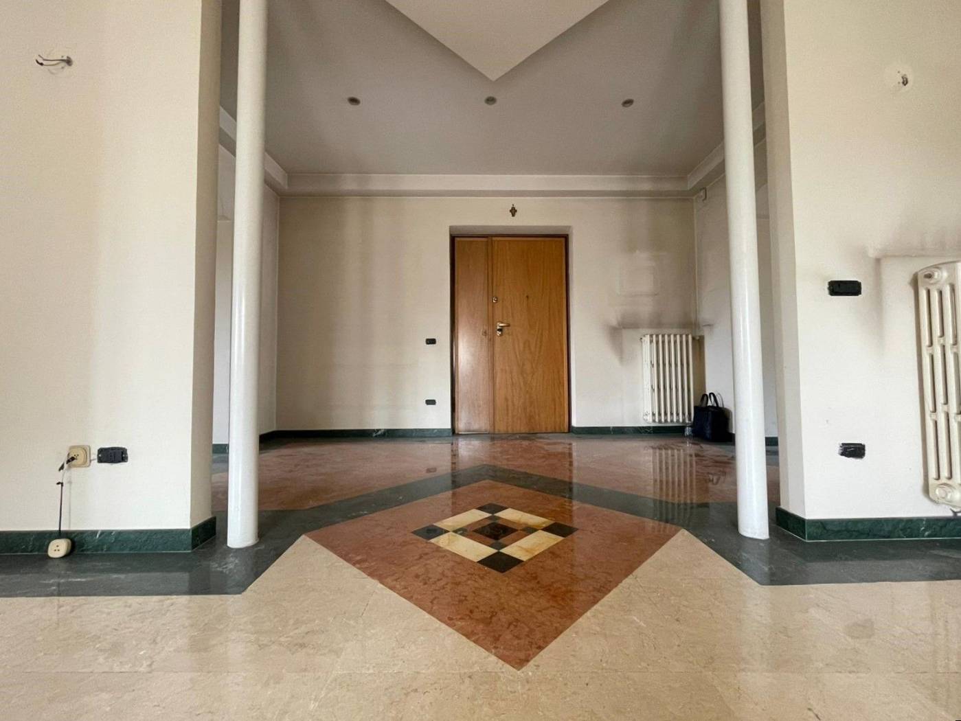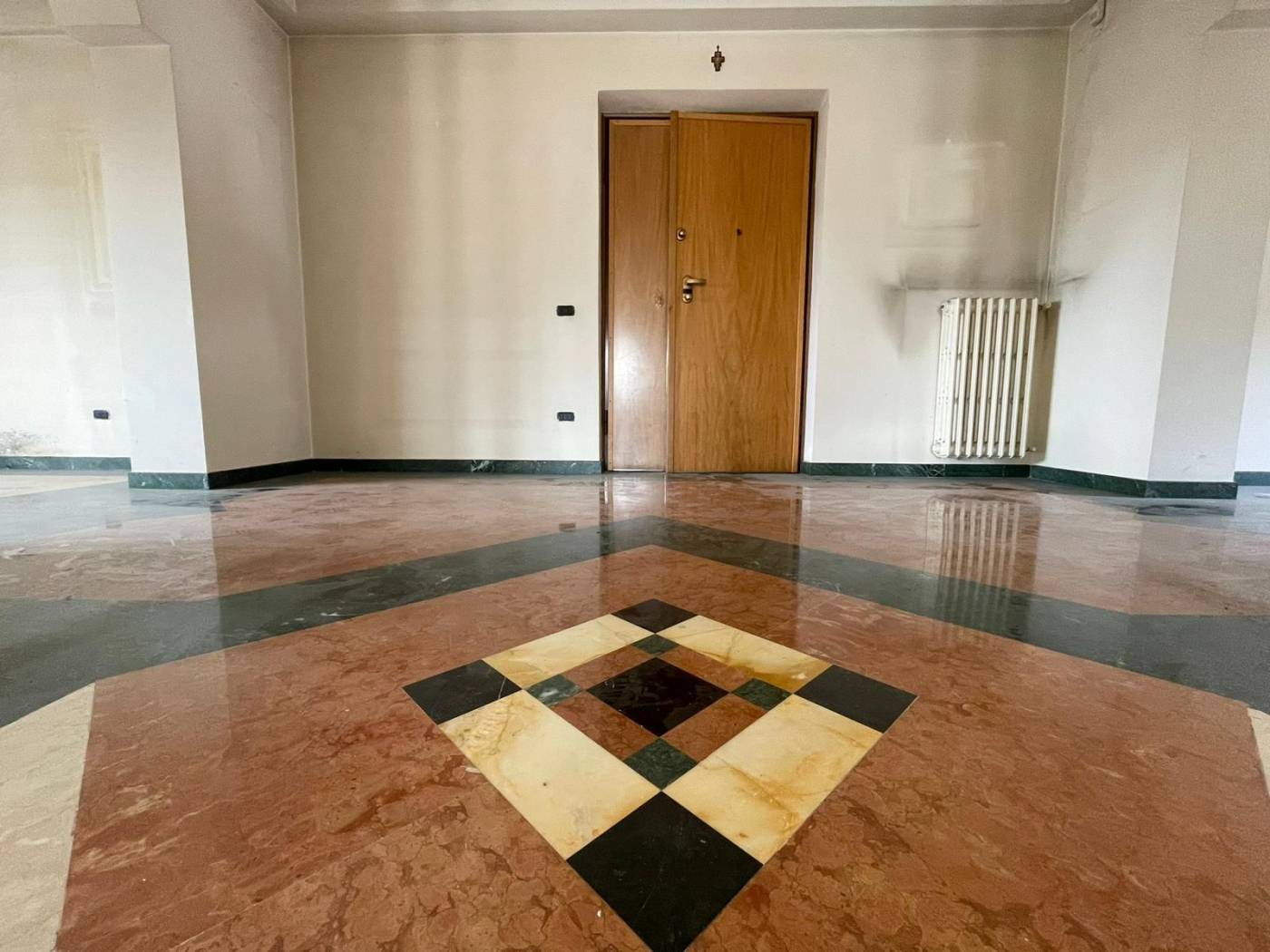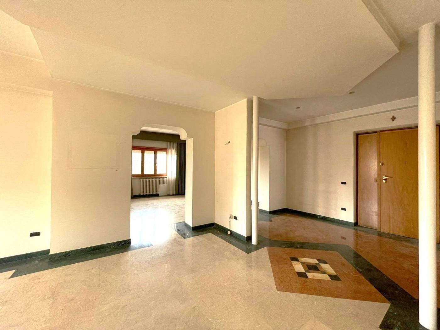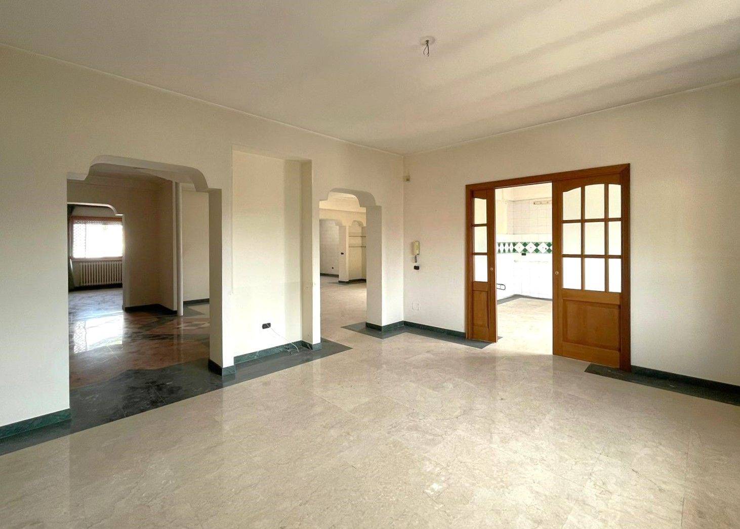 L'ingresso, protetto da porta blindata, introduce subito a una zona accogliente e luminosa, con pavimenti in marmo pregiato, tra cui il Botticino bianco, Rosso di Verona, Verde Alpi e Verde Guatemala. La zona living di 22 mq è arricchita da due eleganti archi a forma geometrica, che si collegano perfettamente alla zona pranzo di 37 mq e alla cucina separata, che può essere chiusa tramite una porta a scrigno doppia marca Garofali. Entrambi i locali hanno accesso al primo balcone, che offre uno spazio esterno ideale per godere della tranquillità della zona. La zona giorno è completata da un salotto di 15 mq, perfetto per il relax.
