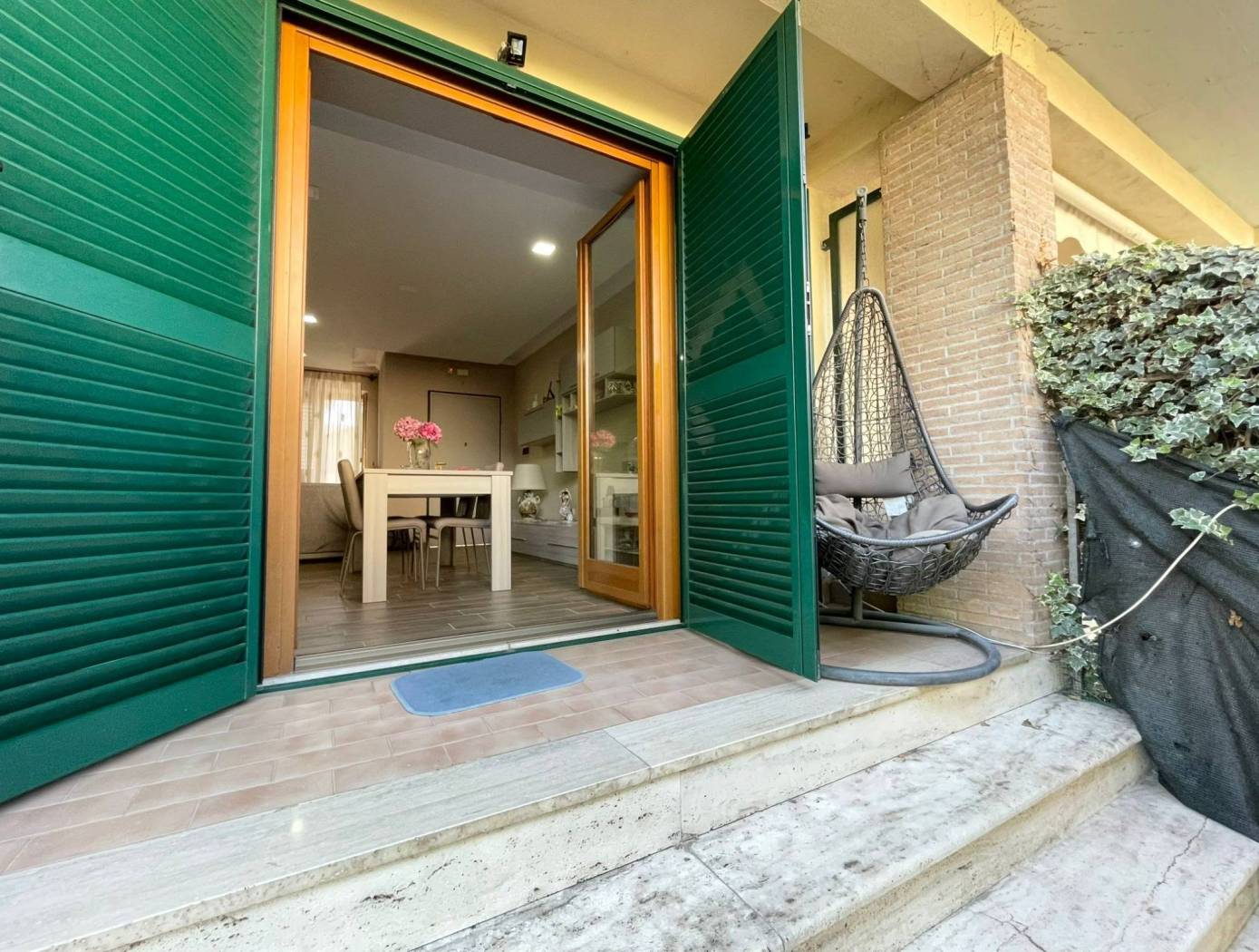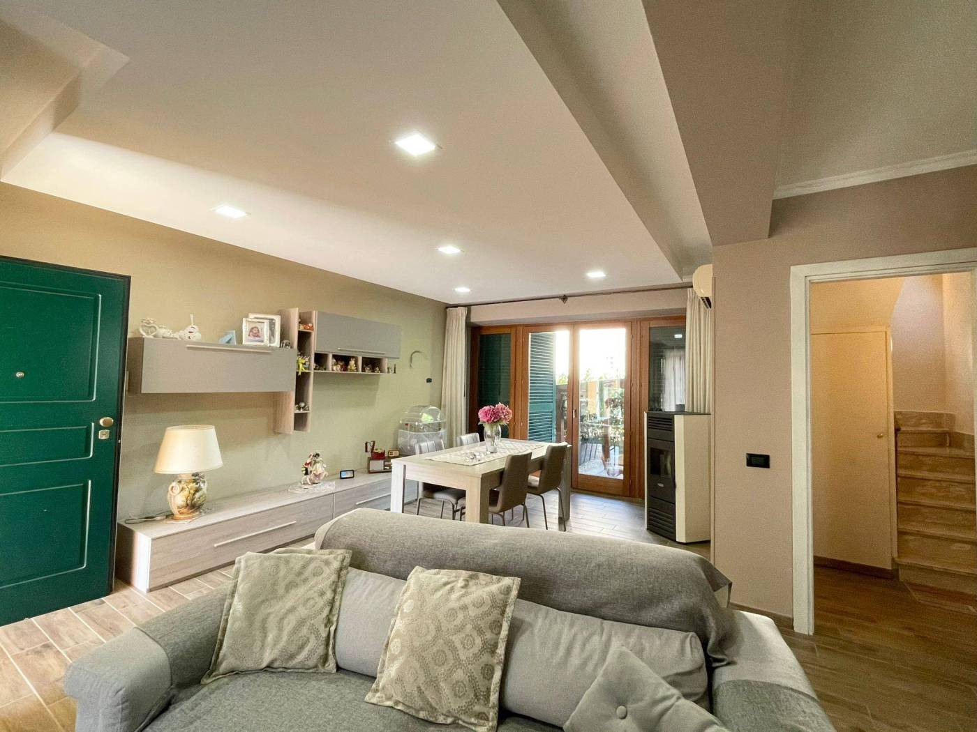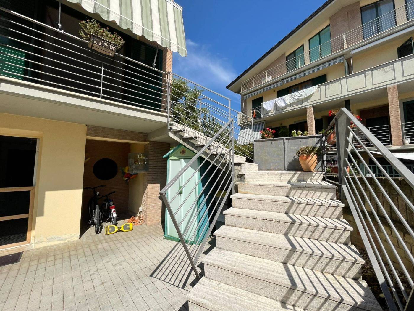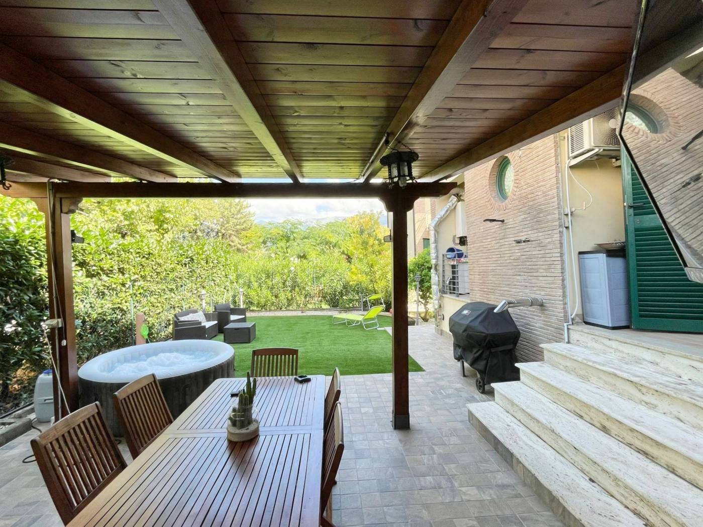 Nel signorile centro residenziale “Villaggio Erica” in via Trecce, zona svincolo Via Carrara/Campovarigno, proponiamo in vendita una elegante villa bifamiliare. Dall'ingresso con porta blindata, entriamo in una zona living dove gli ambienti sono tutti distribuiti con accessi diretti alle corti, il tutto progettato per sviluppare al meglio gli spazi, ma soprattutto per avere tanta luce naturale. Tutto in questi ambienti rispecchia luminosità, trasparenza, minimalismo. Il PIANO TERRA sapientemente rialzato (dall'ingresso piano terra con cancelletto), è adibito a zona giorno, sviluppandosi in un unico ambiente, La loro destinazione d'uso marcata dal pavimento color rovere chiaro, gli ambienti cucina/pranzo si affacciano sulla zona living/soggiorno di 35mq, luminosa ed accogliente, dalle grandi aperture alla luce naturale data dai grandi finestroni con accesso alla balconata esterna di 13mq estesa alla corte retrostante di 120mq, sapientemente adibita a zona conviviale con gazebo in legno e prato sintetico, dove poter godere di giornate in relax o di serate in compagnia. Al PRIMO PIANO la zona notte si sviluppa su due camere da letto rispettivamente di 10mq e l'altra di 16 mq entrambe con accesso ai balconi. Interessanti ambienti notte, tutti con pavimentazione in laminato color rovere chiaro, camere ampie moderne con stile giovanile e fresco. La camera padronale di 16 mq, anch'essa con affaccio sul balcone ci accoglie in un ambiente dal carattere classico degli arredamenti al tocco di modernità delle pareti. Un disimpegno di 8mq., un bagno di 6mq con apertura al balcone e con box doccia di ultima generazione dotato di idromassaggio. L'ultimo ambiente della casa è il PIANO SECONDO, una zona sottotetto praticabile di 40mq. con balconi totali di 14mq., un ripostiglio di 8mq. Una camera da letto di 10mq, con armadio a muro, e la seconda camera da letto di 10mq. adibita a studio, un bagno/lavanderia di 9mq., con box doccia ed affaccio su balcone di 10mq. Il sottile fascino romantico che il sottotetto esercita, in passato la tipica abitazione degli artisti, oggi si trasforma in abitazione comoda e confortevole. Il PIANO SEMINTERRATO (terra da ingresso) prevede un garage di circa 35 mq. con serranda automatica, ed una zona di circa 20mq per varie funzionalità. L'immobile è dotato di molteplici confort: impianto termico sezionato per risparmio energetico in gas metano ma anche in pellet, infissi in doppio vetro, zanzariere nella zona giorno, tende parasole, autoclave di 500 litri, impianto di allarme, condizionatori, impianto depurazione acqua, impianto televisione anche in corte esterna sotto gazebo, cancello automatizzato, basculante automatizzata, controsoffittatura con luci led. Il contesto signorile, silenzioso e ben curato, ha un costo di condominio per la cura e manutenzione esterna del residence di Eu. 20,00 mensili. Soluzione immobiliare elegante e signorile.