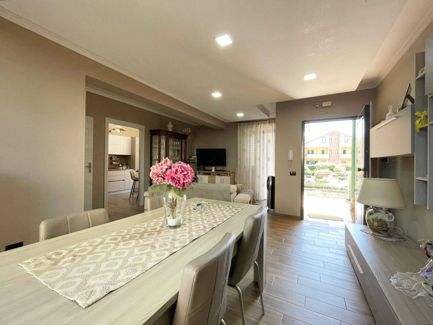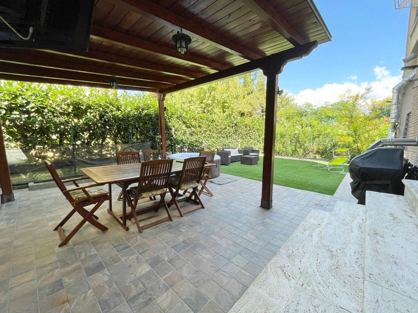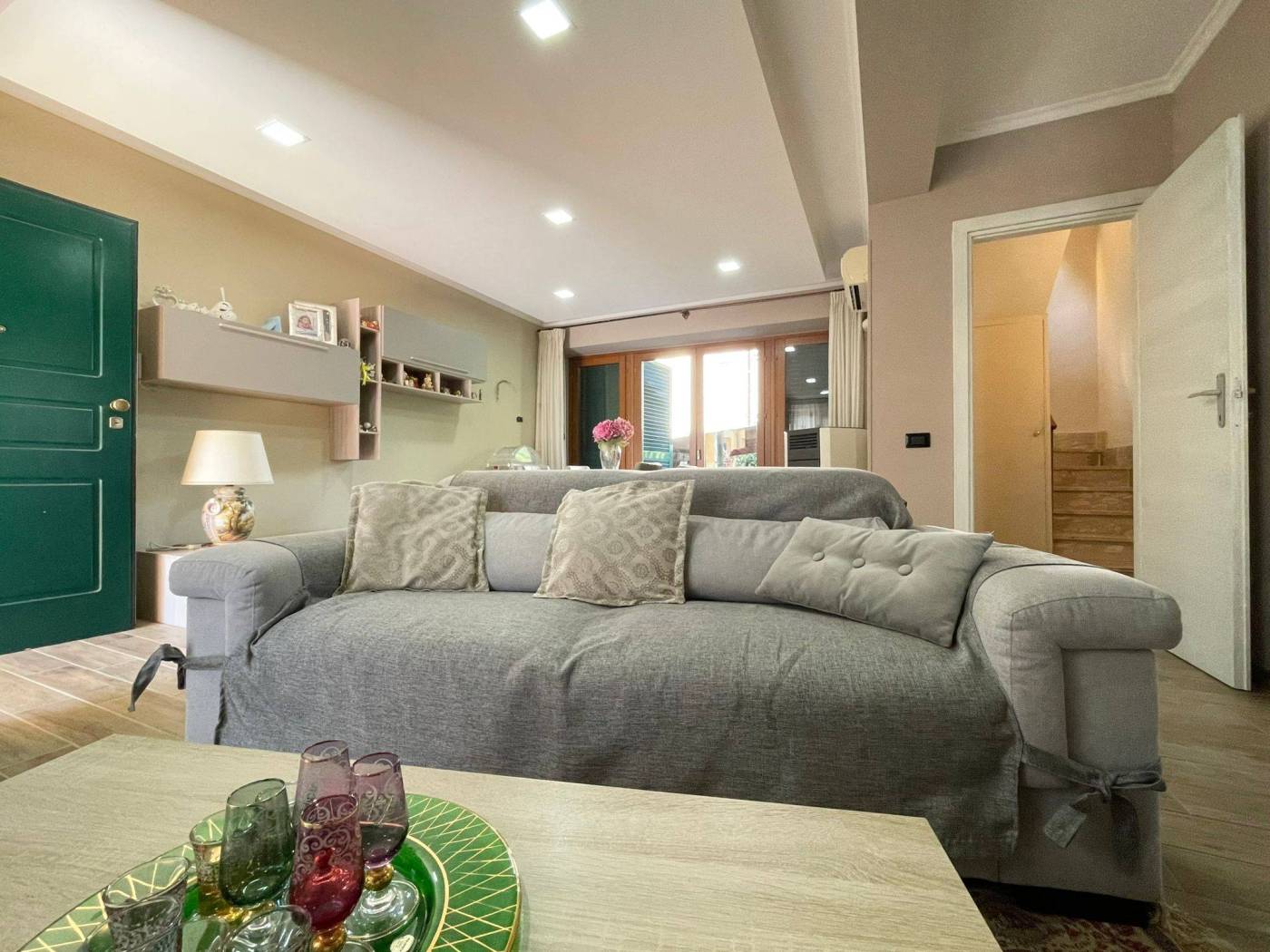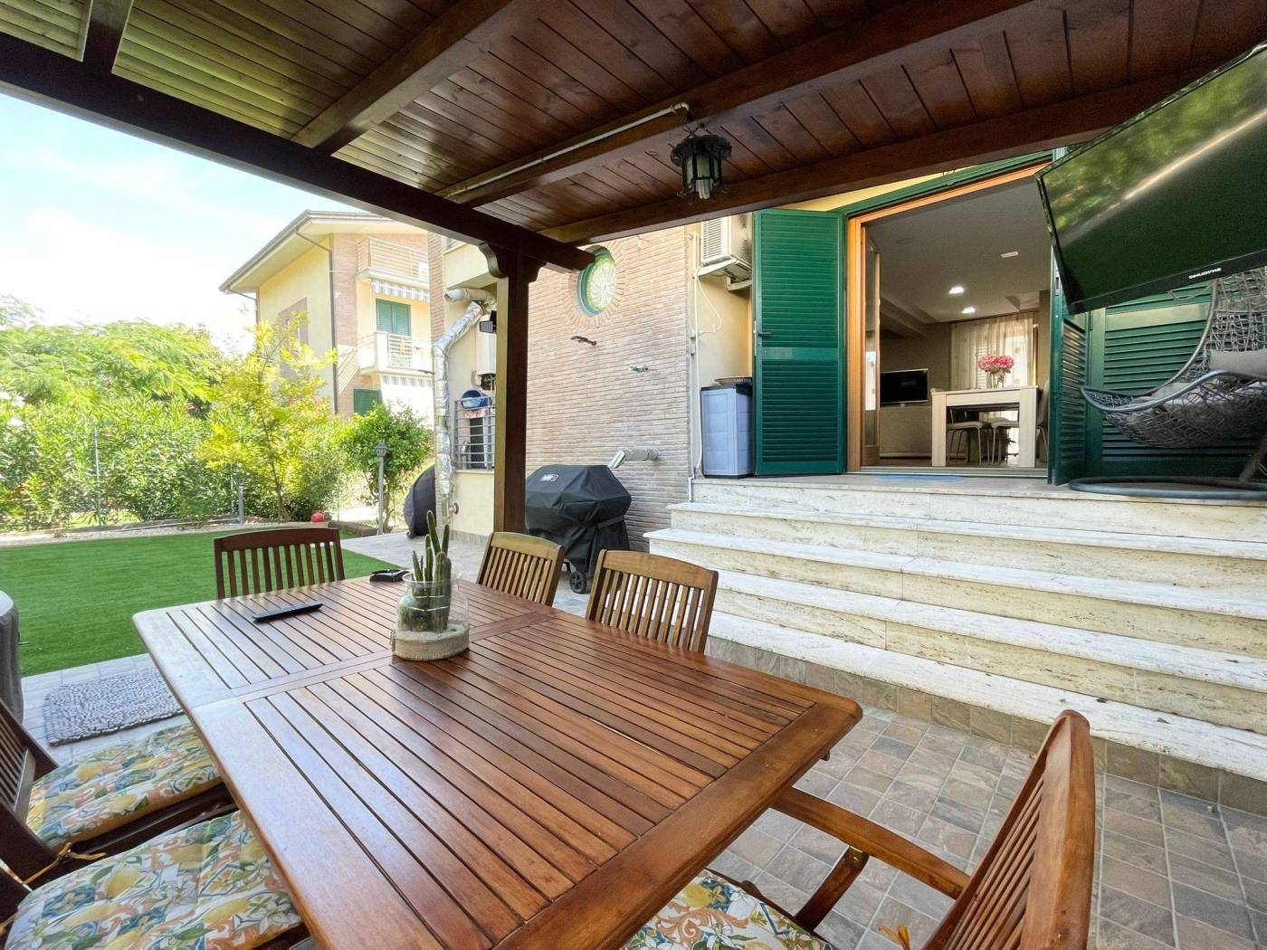 Nel signorile centro residenziale “Villaggio Erica” in via Trecce, zona svincolo Via Carrara/Campovarigno, proponiamo in vendita una elegante villa bifamiliare. Dall'ingresso con porta blindata, entriamo in una zona living dove gli ambienti sono tutti distribuiti con accessi diretti alle corti, il tutto progettato per sviluppare al meglio gli spazi, ma soprattutto per avere tanta luce naturale. Tutto in questi ambienti rispecchia luminosità, trasparenza, minimalismo. Il PIANO TERRA sapientemente rialzato (dall'ingresso piano terra con cancelletto), è adibito a zona giorno, sviluppandosi in un unico ambiente, La loro destinazione d'uso marcata dal pavimento color rovere chiaro, gli ambienti cucina/pranzo si affacciano sulla zona living/soggiorno di 35mq, luminosa ed accogliente, dalle grandi aperture alla luce naturale data dai grandi finestroni con accesso alla balconata esterna di 13mq estesa alla corte retrostante di 120mq, sapientemente adibita a zona conviviale con gazebo in legno e prato sintetico, dove poter godere di giornate in relax o di serate in compagnia. Al PRIMO PIANO la zona notte si sviluppa su due camere da letto rispettivamente di 10mq e l'altra di 16 mq entrambe con accesso ai balconi. Interessanti ambienti notte, tutti con pavimentazione in laminato color rovere chiaro, camere ampie moderne con stile giovanile e fresco. La camera padronale di 16 mq, anch'essa con affaccio sul balcone ci accoglie in un ambiente dal carattere classico degli arredamenti al tocco di modernità delle pareti. Un disimpegno di 8mq., un bagno di 6mq con apertura al balcone e con box doccia di ultima generazione dotato di idromassaggio. L'ultimo ambiente della casa è il PIANO SECONDO, una zona sottotetto praticabile di 40mq. con balconi totali di 14mq., un ripostiglio di 8mq. Una camera da letto di 10mq, con armadio a muro, e la seconda camera da letto di 10mq. adibita a studio, un bagno/lavanderia di 9mq., con box doccia ed affaccio su balcone di 10mq. Il sottile fascino romantico che il sottotetto esercita, in passato la tipica abitazione degli artisti, oggi si trasforma in abitazione comoda e confortevole. Il PIANO SEMINTERRATO (terra da ingresso) prevede un garage di circa 35 mq. con serranda automatica, ed una zona di circa 20mq per varie funzionalità. L'immobile è dotato di molteplici confort: impianto termico sezionato per risparmio energetico in gas metano ma anche in pellet, infissi in doppio vetro, zanzariere nella zona giorno, tende parasole, autoclave di 500 litri, impianto di allarme, condizionatori, impianto depurazione acqua, impianto televisione anche in corte esterna sotto gazebo, cancello automatizzato, basculante automatizzata, controsoffittatura con luci led. Il contesto signorile, silenzioso e ben curato, ha un costo di condominio per la cura e manutenzione esterna del residence di Eu. 20,00 mensili. Soluzione immobiliare elegante e signorile.